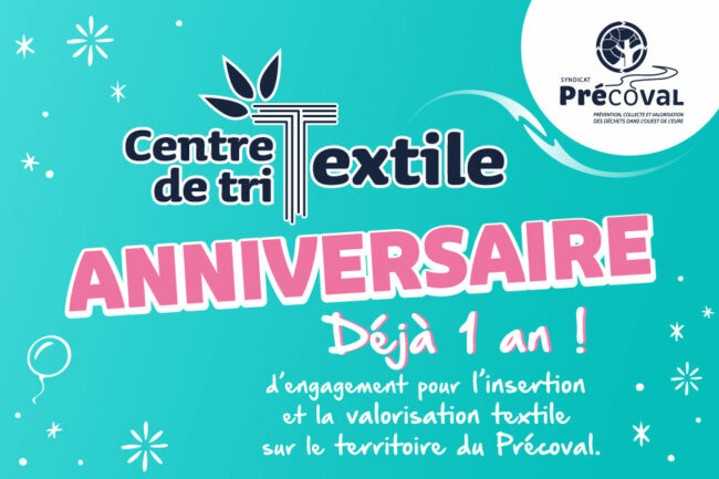Notre Centre de tri textile fête ses 1 an ! 1 an d’engagement pour l’insertion et la valorisation textile sur le territoire du Précoval. Au programme de cette journée du samedi 11 avril de 09h à 18h : • Super vente au kilo : Dénichez vos pièces préférées à seulement 6€ le kilo…