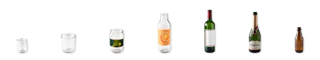 Les bouteilles, pots et bocaux en verre