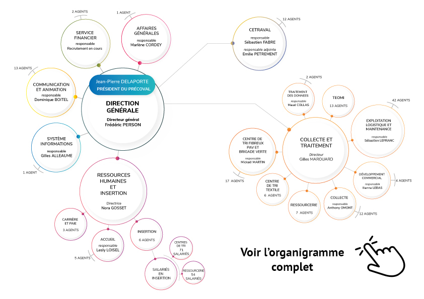 Pôle technique: service CETRAVAL (centre d’enfouissement et de valorisation des déchets et traitement des biodéchets) et service Exploitation (collecte, déchèteries, plateformes, ressourcerie, centre de tri fibreux, centre de tri textile, points d’apport volontaire, brigade verte, chargés de tarification incitative, développement commercial et maintenance)